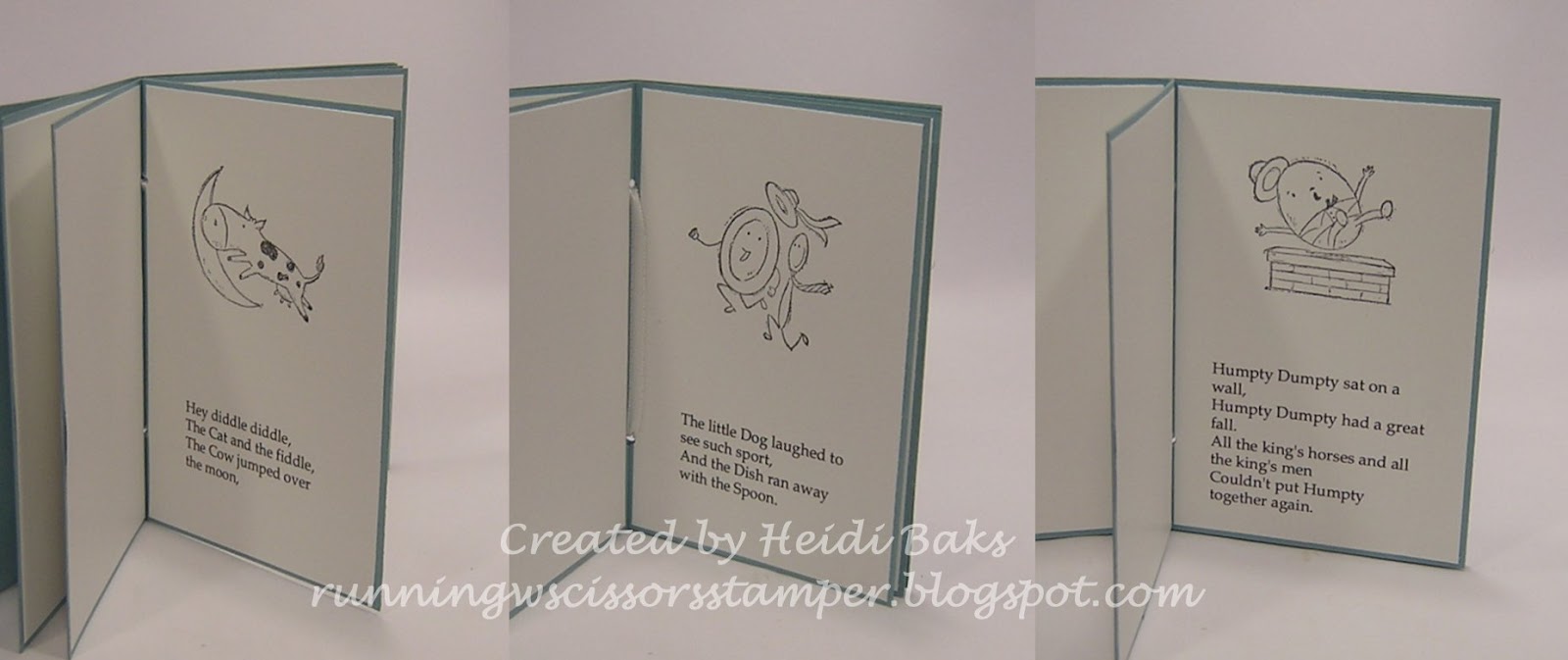Stamps: Nursery Times; Paper: Baja Breeze, Cajun Craze, So Saffron, Whisper White, Just Eat Cake DSP; Ink: So Saffron, Daffodil Delight, Blush Blossom, Blushing Bride, Pumpkin Pie, Marina Mist, Sahra Sand, Soft Suede, Basic Gray, Basic Black, Black Stazon; Accessories: Dotted Scallop Ribbon border punch, 1-3/4" Circle punch, Silver glimmer paper, Aquapainter, Simply Scored, Sponge, Circles #2 die, Big Shot, Ruler, Stylus, Toothpick.