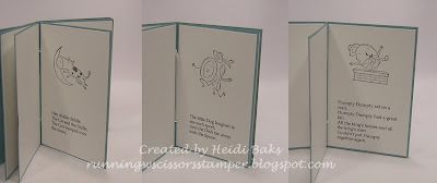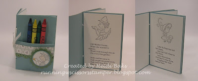 Stamps: Nursery Times; Paper: Baja Breeze, Wild Wasabi, Whisper White, Just Eat Cake DSP; Ink: Pumpkin Pie, Basic Black, Black Stazon, Blush Blossom marker; Accessories: Whisper White taffeta ribbon, Aquapainter, Circle punches, Scallop circle punch, Eyelet border punch, Crop-o-dile, My Digital Studio, Crayons.
