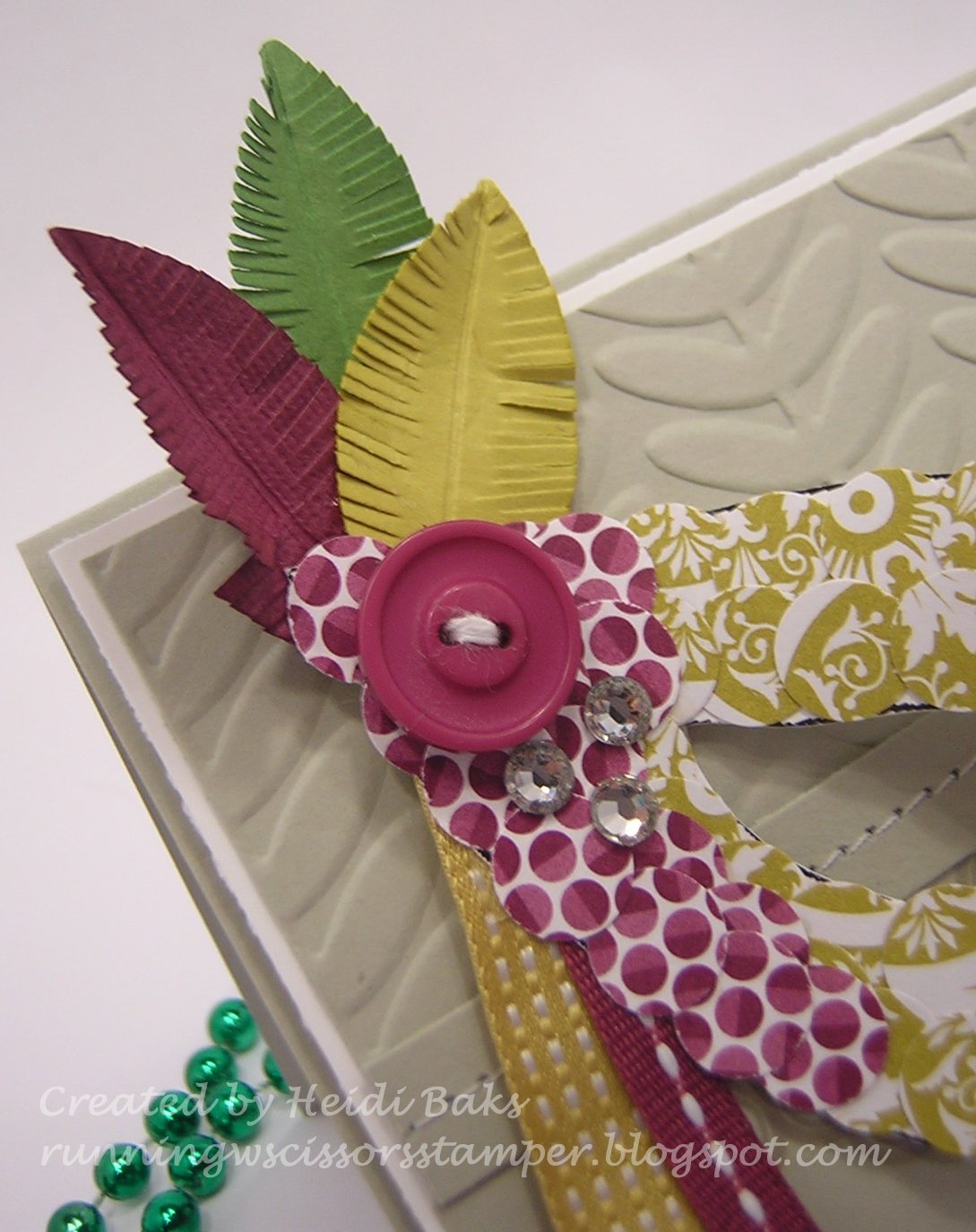 What a fun card, Heidi. Love the beautiful feathers and cute mask. Thank you so much for sharing at Our Creative Corner this week... :)