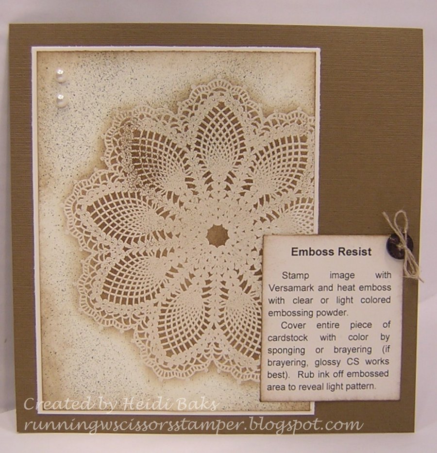 I had to order this Hello, Doily background stamp specifically for this class. It creates such a beautiful vintage lace look. Using the spritzer tool adds to the vintage detail.And our matching card...