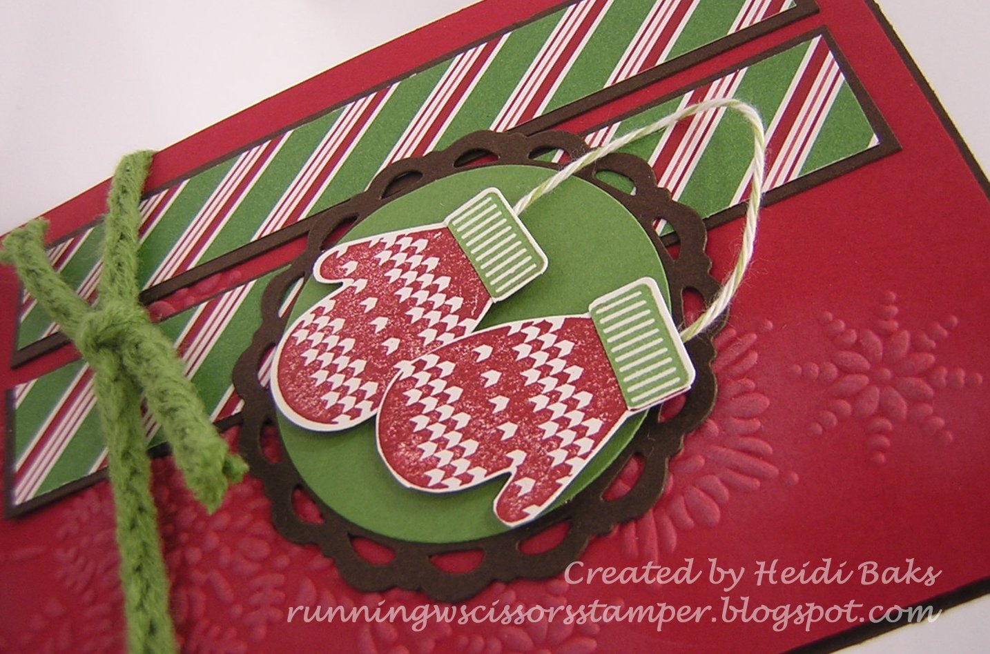 This week is stamp club week, that is, crazy week! I don't know why hosting 17 ladies in my home over a couple days is so taxing?! This club session we're playing with Holiday mini supplies to make Thanksgiving and Christmas cards. I'm a sucker for cozy mittens, so the coordinating mitten stamp set and punch are perfect!