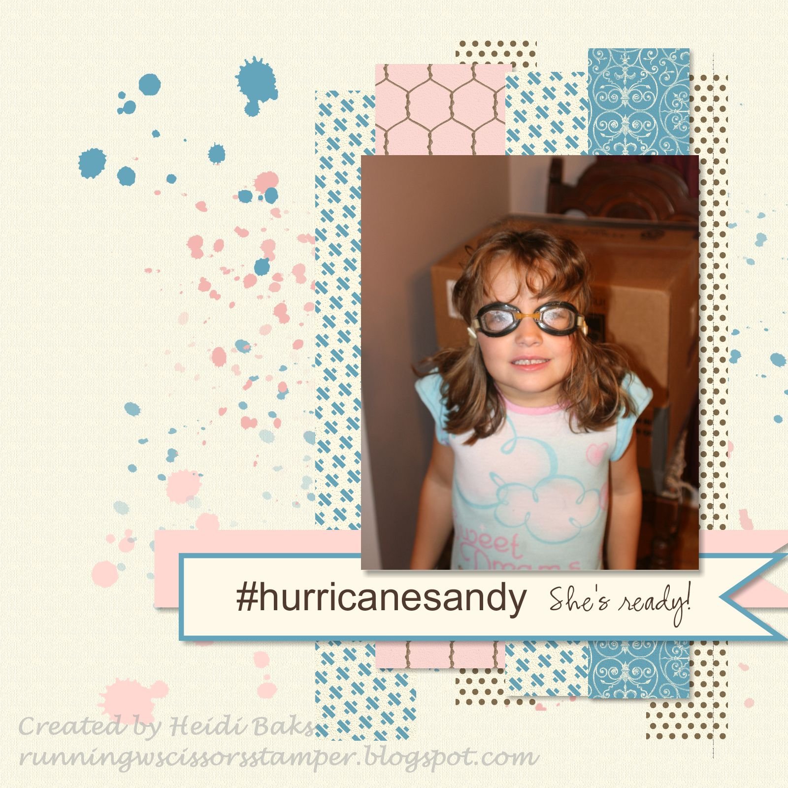 I used Sketchy Thursday's November 2011 Guest DT sketch. Little Missy had been hearing all the news and warnings for the upcoming storm, so this is how she prepared. Luckily we came through without any damage, although we are feeling the residual effects of gas shortages in our area. DH also invited a colleague to stay with us, as he was without power for days.