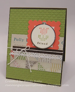 Have you seen the new Canvas Creations sheets? What a fun new texture to add to your cards! I stamped on the Canvas Creations sheet for both the upper layer and the bottom layer of the cross-stitch focal image. And what do you think about the lace tape? I've already bought a whole bunch!