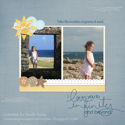 Stamps: _Designer Kits\Days to Remember\Days to Remember - overlay, Color = MIDNIGHT MUSE 17,69,93, Natural Composition Overlays\Natural Composition Overlays - 10, Color = WHISPER WHITE 255,255,255, Calendar Basics Kit\Calendar Kit - sun, Color = DAFFODIL DELIGHT 255,211,92, Summer Splash\Summer Splash - sand dollar, Color = CREAMY CARAMEL 203,158,117, Summer Splash\Summer Splash - starfish, Color = 160,125,97, Summer Splash\Summer Splash - sea shell, Color = CRUMB CAKE 179,161,131, Fantabulous You\Fantabulous You - i love you to infinity, Color = MIDNIGHT MUSE 17,69,93; Embellishments: _Designer Kits\Sunny Day - elements\Sunny Day - cloud 1, Striped Grosgrain Ribbon\Daffodil Delight, Buttons Pack Brights\Daffodil Delight - button 2, Baker's Twine\Baker's Twine - White knot short, Mis-Stitched - embellishments\Mis-Stitched - white 3, Mis-Stitched - embellishments\Mis-Stitched - white 3; Punches: Basics\1.25 Square Punch, Fill Color = 143,160,170, Basics\1.25 Square Punch, Fill Color = VERY VANILLA 254,249,232, Borders\Dotted Scallop Ribbon Punch, Fill Color = WHISPER WHITE 255,255,255, Basics\1.25 Circle Punch, Fill Color = VERY VANILLA 254,249,232.