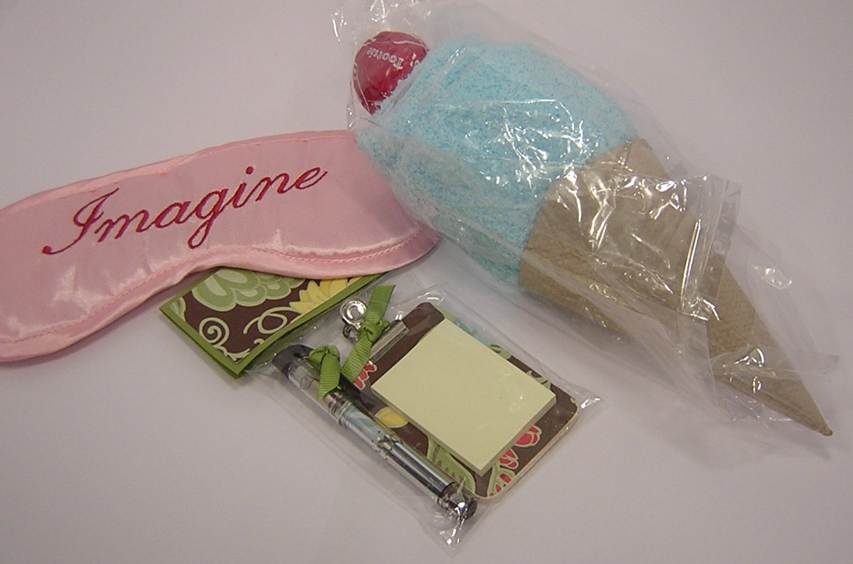 And I wanted to add some pics of gifts from my roomies. Rosemary gave us comfy socks, packaged adorably as an ice cream cone, and eye covers. Perfectly themed to go along with our jammie night. Little Missy has already laid claim to the eye covers.